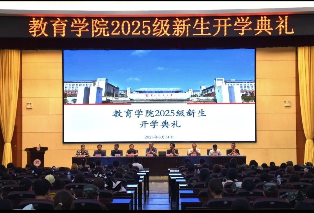 学院2025级新生开学典礼顺利举行。学院党委书记胡长华、三位新生代表、教师代表漆涛依次作典礼发言。他们鼓励同学们培养刻苦钻研的学习精神和健康向上的人际交往观念,呼吁大家厚植教育情怀,共同进步。最后,院长任胜洪作学院发展历程和基本情况介绍,希望同学们在大学里知行合一、学以致用。