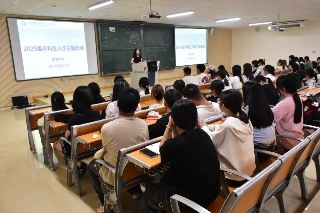 2025级新生辅导员在“开学第一课”主题班会上聚焦心态调整、军训规范、校规解读、安全防护四个模块,为新生进行了入学指导。