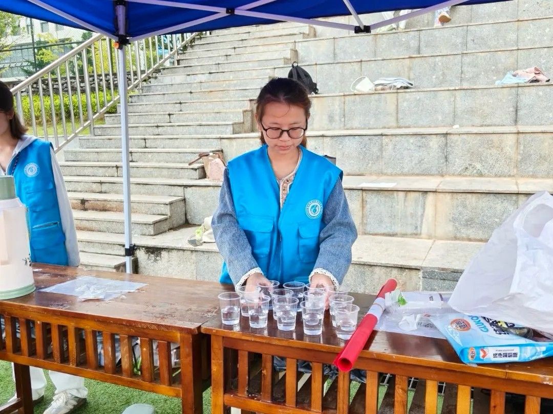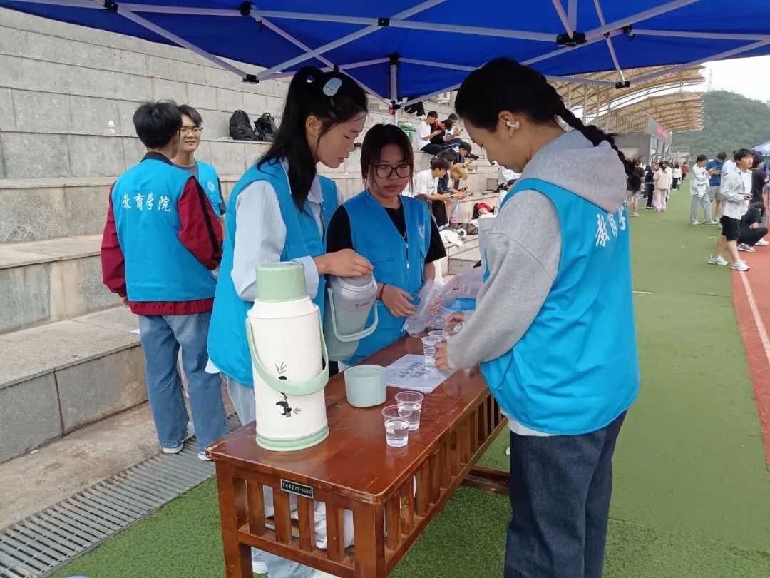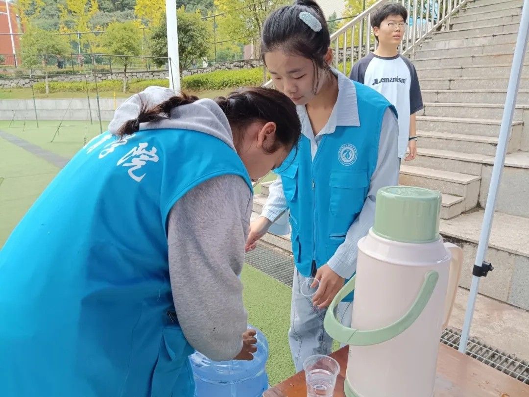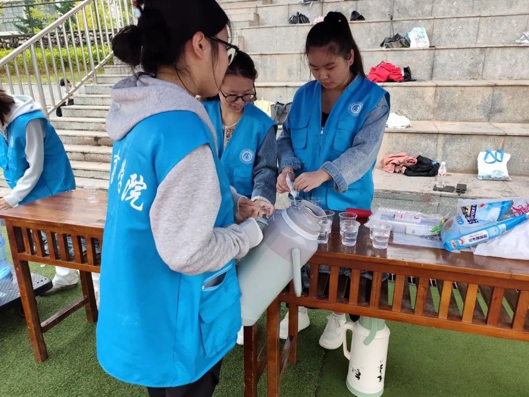 为助力同学们顺利完成体测,青分会开展了“金秋助测,志愿同行”志愿服务活动。体测期间,工作人员为同学们准备饮用水和葡萄糖,并及时关心大家的身体状况,传递学院温暖与关怀。