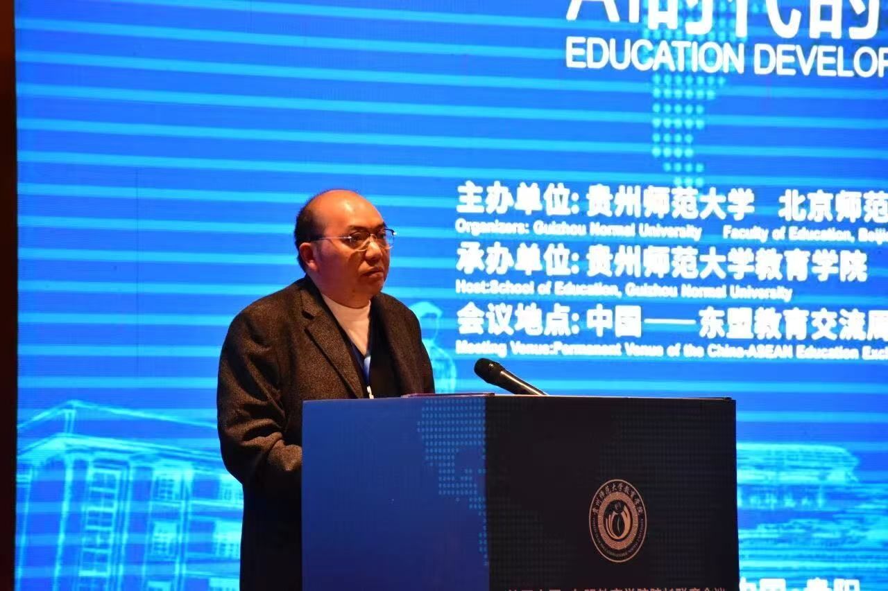 贵州师范大学教育学院副院长杜尚荣教授作题为《人工智能背景下教学方式变革的逻辑与路向》的报告。