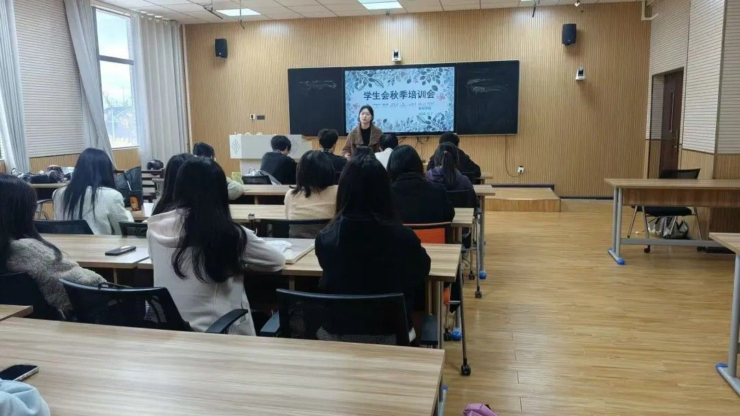 学生会组织开展第二次全体大会暨秋季培训会。会议围绕部门工作日常、工作态度与团体意识等方面提出新要求。随后,各部门负责人就前期工作进行汇报,并针对存在问题作复盘与梳理,为后续服务同学、助力学院发展筑牢基础。