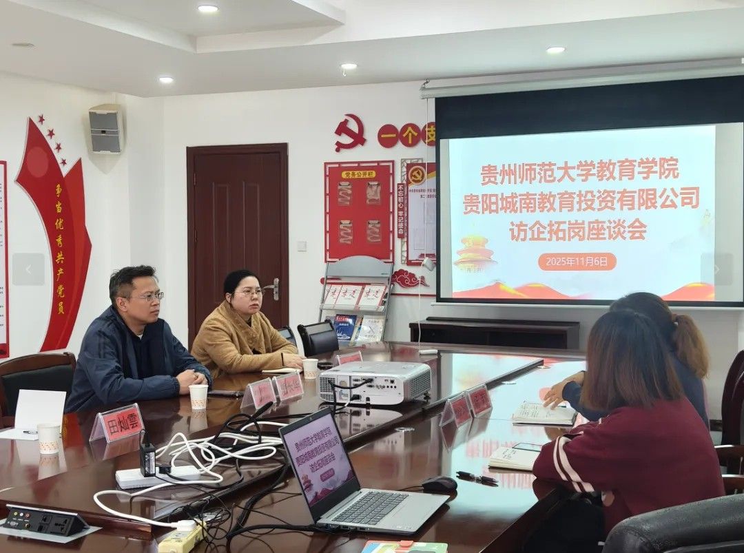 学院党委书记胡长华、副书记文中晴,团委负责人田灿雲前往贵阳城南教育投资有限公司开展访企拓岗工作,双方围绕协同育人模式、学生职业技能实训、企业具体岗位需求等方面进行深入交流,为推进院企深度合作、拓展学生就业渠道奠定坚实基础。