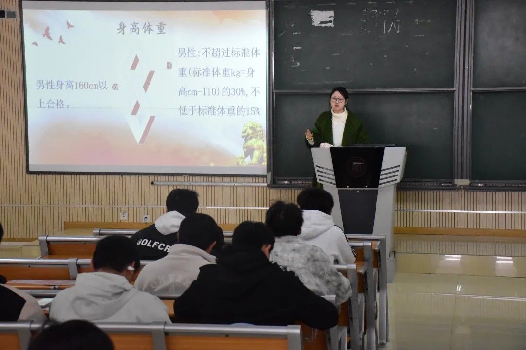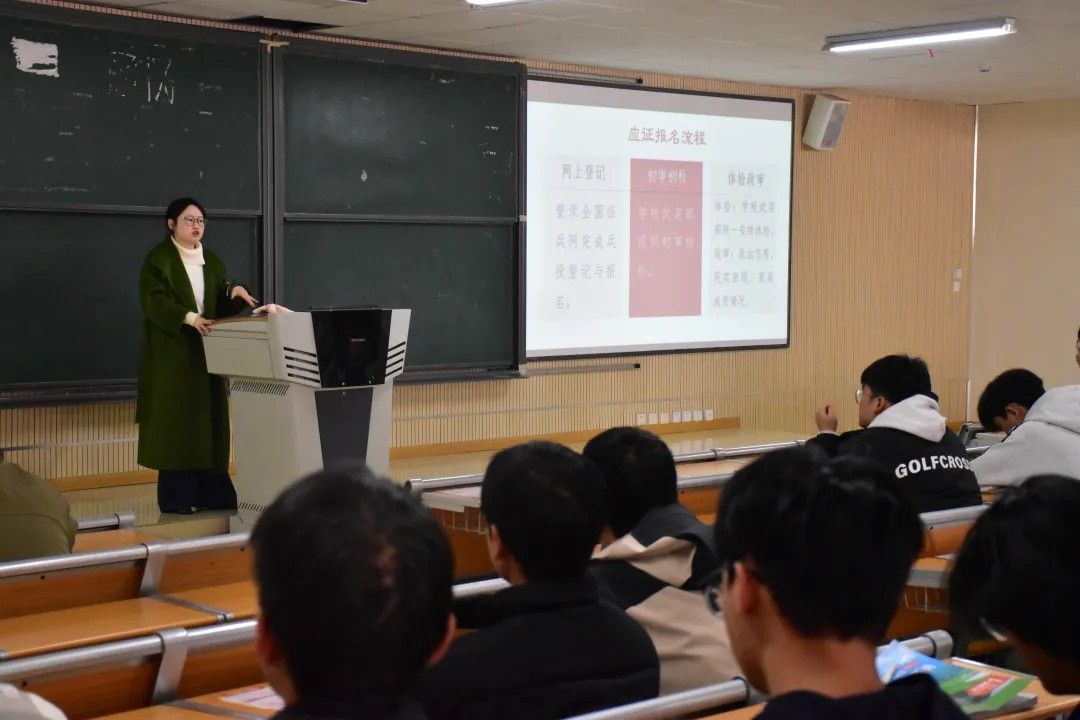 为响应国家号召,激发同学们投身军营的热情,学院积极组织开展2026年春季征兵宣传动员大会。征兵工作联络员胡懿园从应征入伍条件、当兵优惠政策、体检注意事项三方面向同学们进行宣传讲解,帮助大家全面了解相关信息。