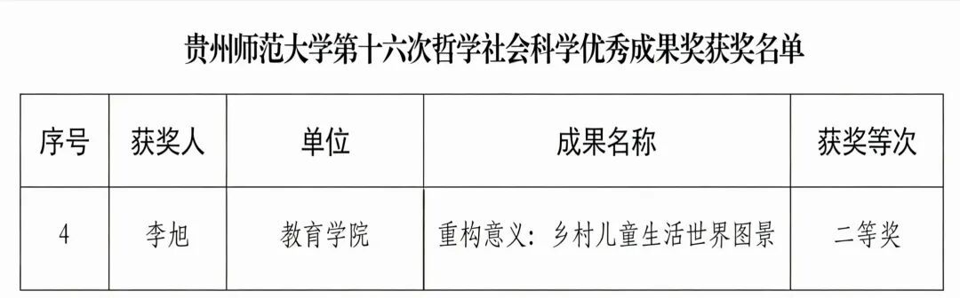 近日,贵州省第十六次哲学社会科学优秀成果奖颁奖大会在省委大礼堂举行。大会宣读了贵州省第十六次哲学社会科学优秀成果奖表彰决定,我校共获得优秀成果奖15项,其中,我院荣获二等奖一项,具体如下: