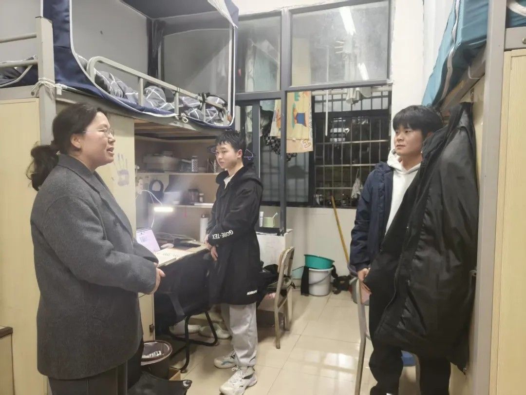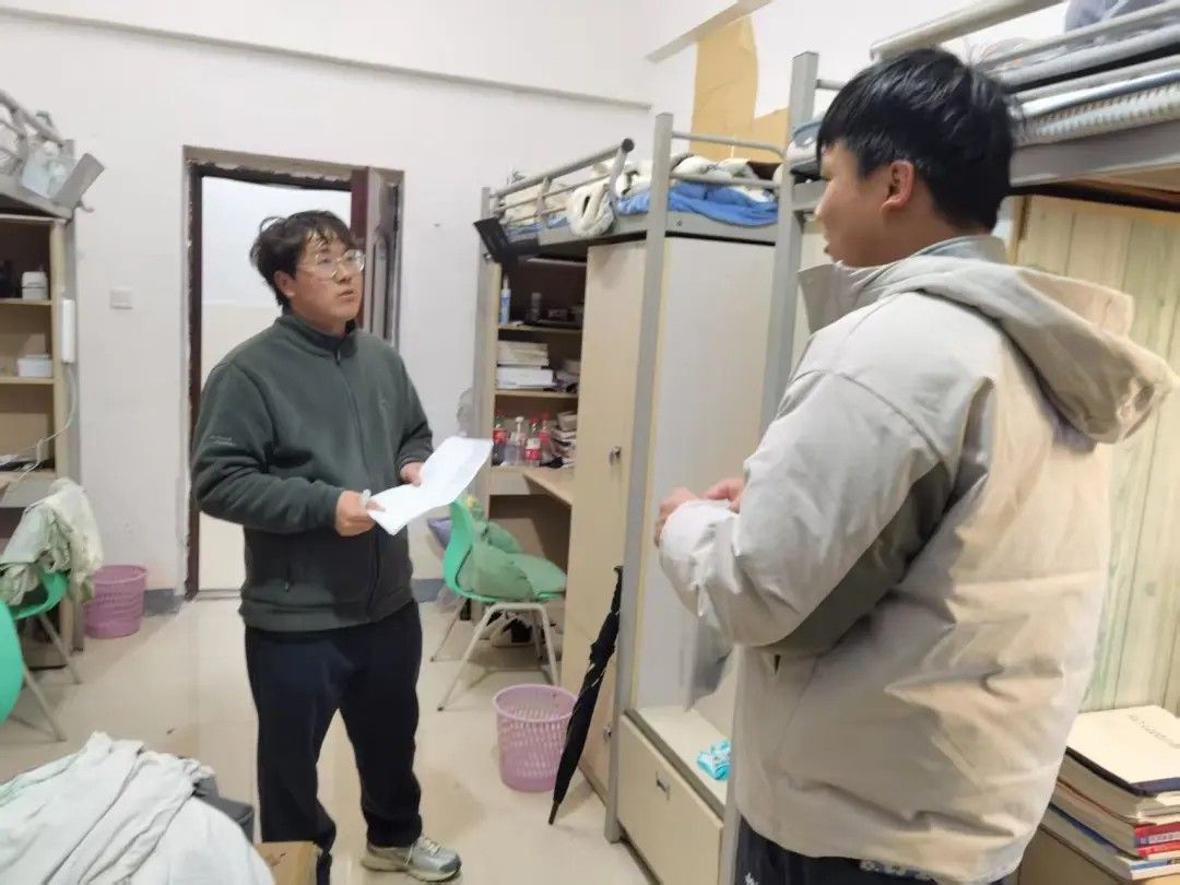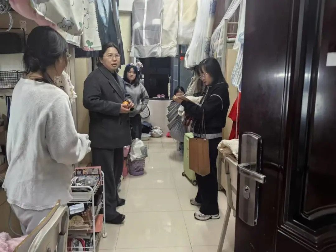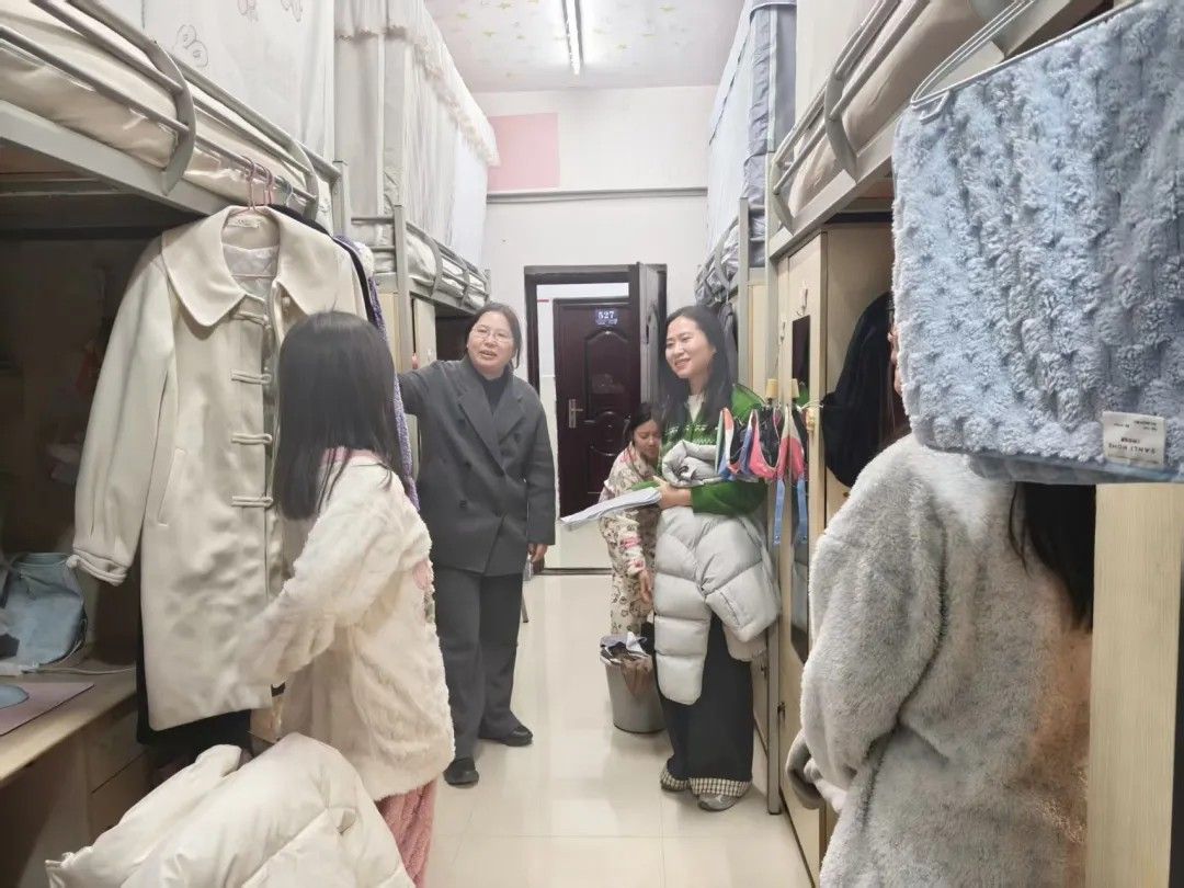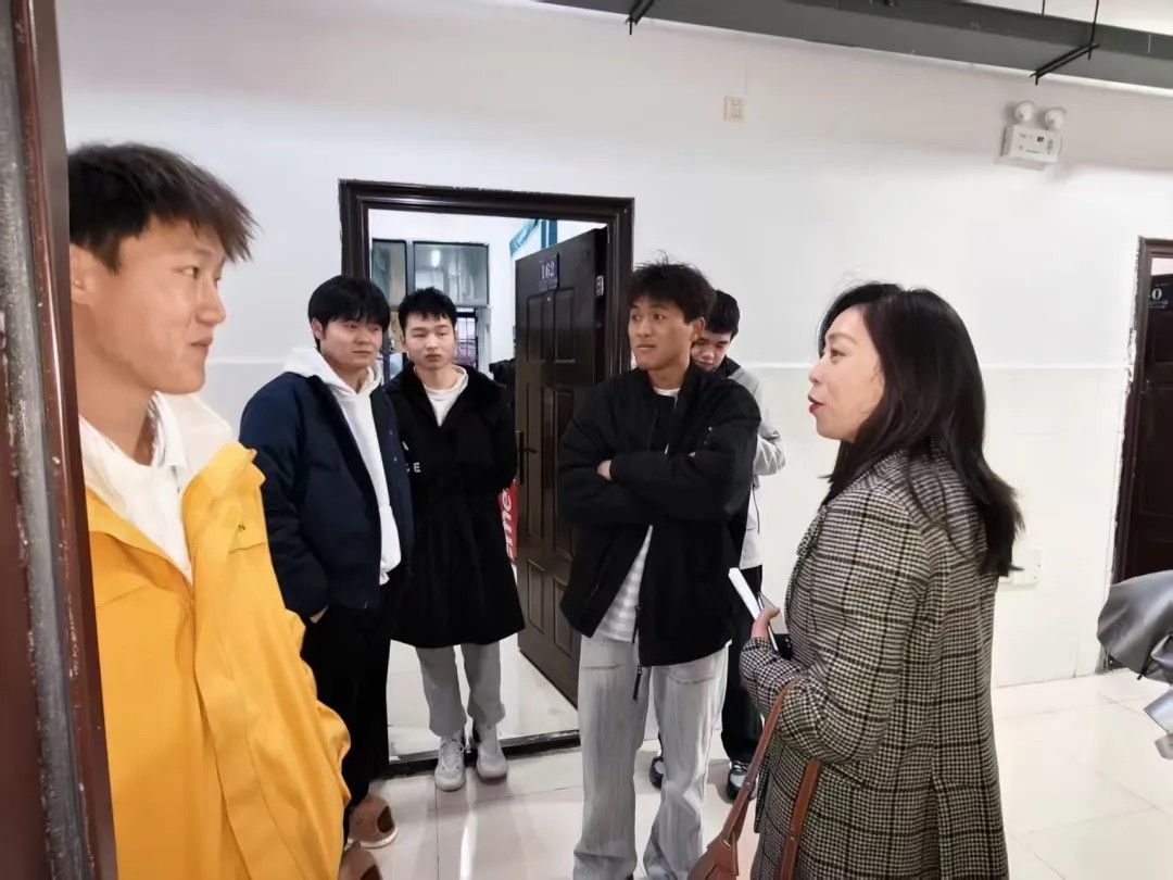 学院党委副书记文中晴带队各年级辅导员深入学生宿舍,开展寝室安全排查。走访中,老师们细致检查用电安全、物品摆放等隐患,提醒同学们注意消防安全、妥善保管个人财物,并亲切询问大家开学后的适应情况和实际需求,让同学们深切感受到学院的温暖与关怀。
