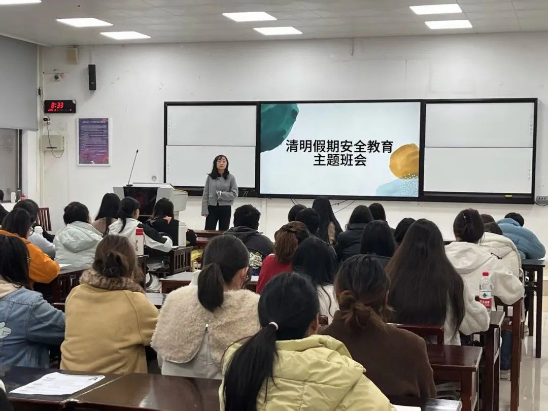 各年级辅导员组织各班开展“安全护航、学风启航”、“守护青春健康,共建无烟校园”、“清明节假期安全教育”主题班会。会上,辅导员引导学生做好新学期规划,加强人身、财产、网络、交通等多方面安全意识,指导大家明确学习目标、合理规划时间。同时,辅导员告知大家吸烟的危害,呼吁同学们远离香烟,保障身心健康。