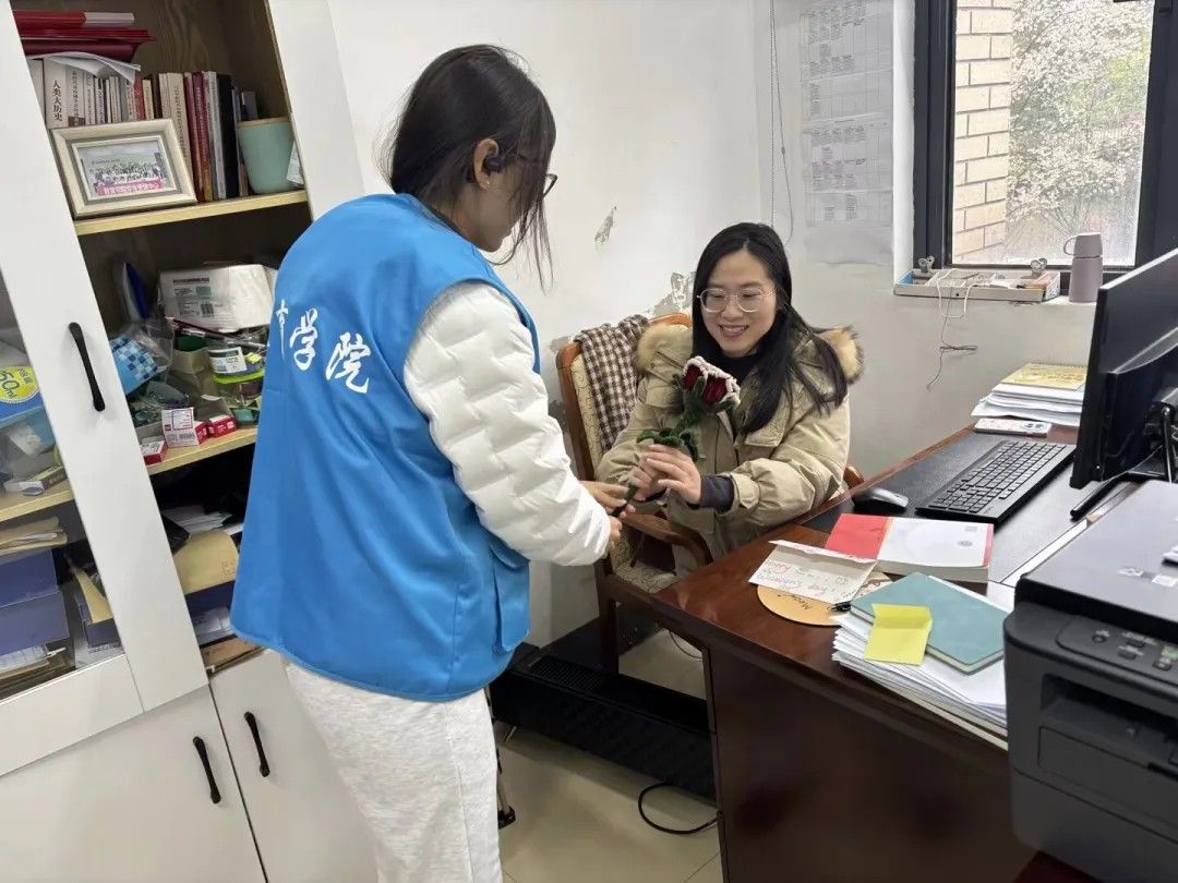 学院开展了“巾帼绽芳华,师者沐春风”妇女节主题活动。从指尖创作的手作,到逐份递送的心意,同学们与学生会成员并肩协作,把春日里最温暖的祝福送到女老师身边,尊师感恩的暖意漫溢校园。